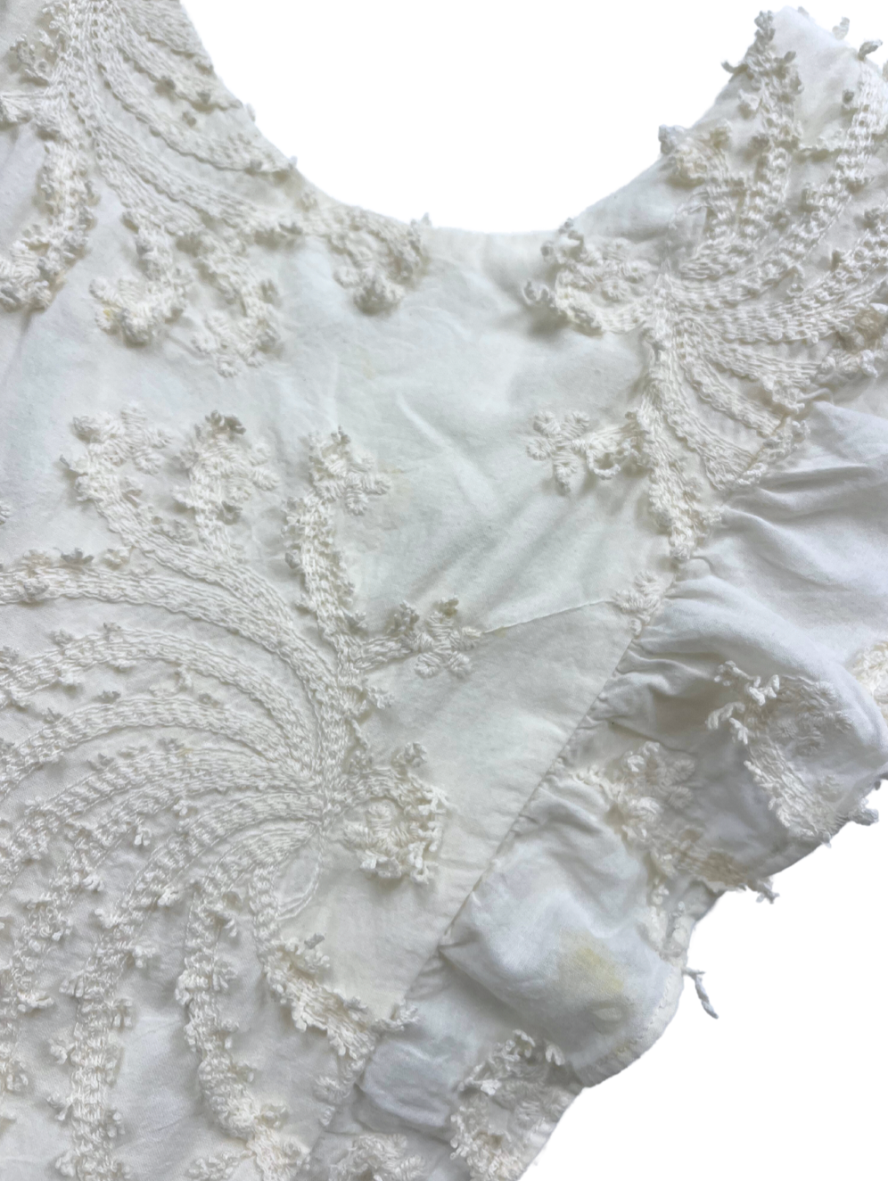 Description : Bon état, 100% coton, Bretelles volantées, Légère tache jaune (voir photo)
