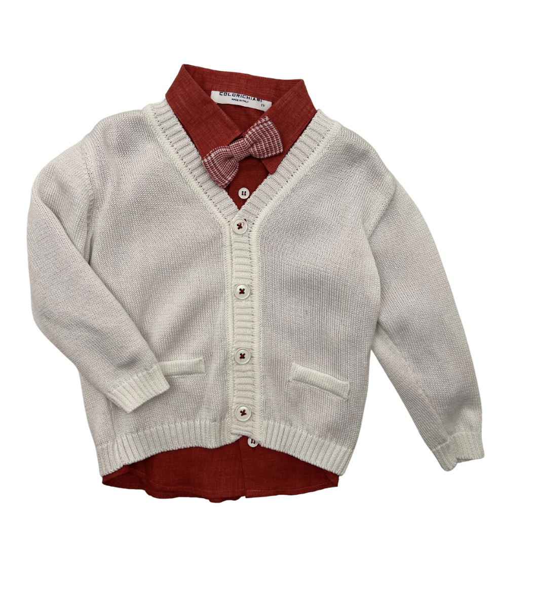 COLORICHIARI - Ensemble salopette, chemise, pull & noeud papillon - 12/18 mois