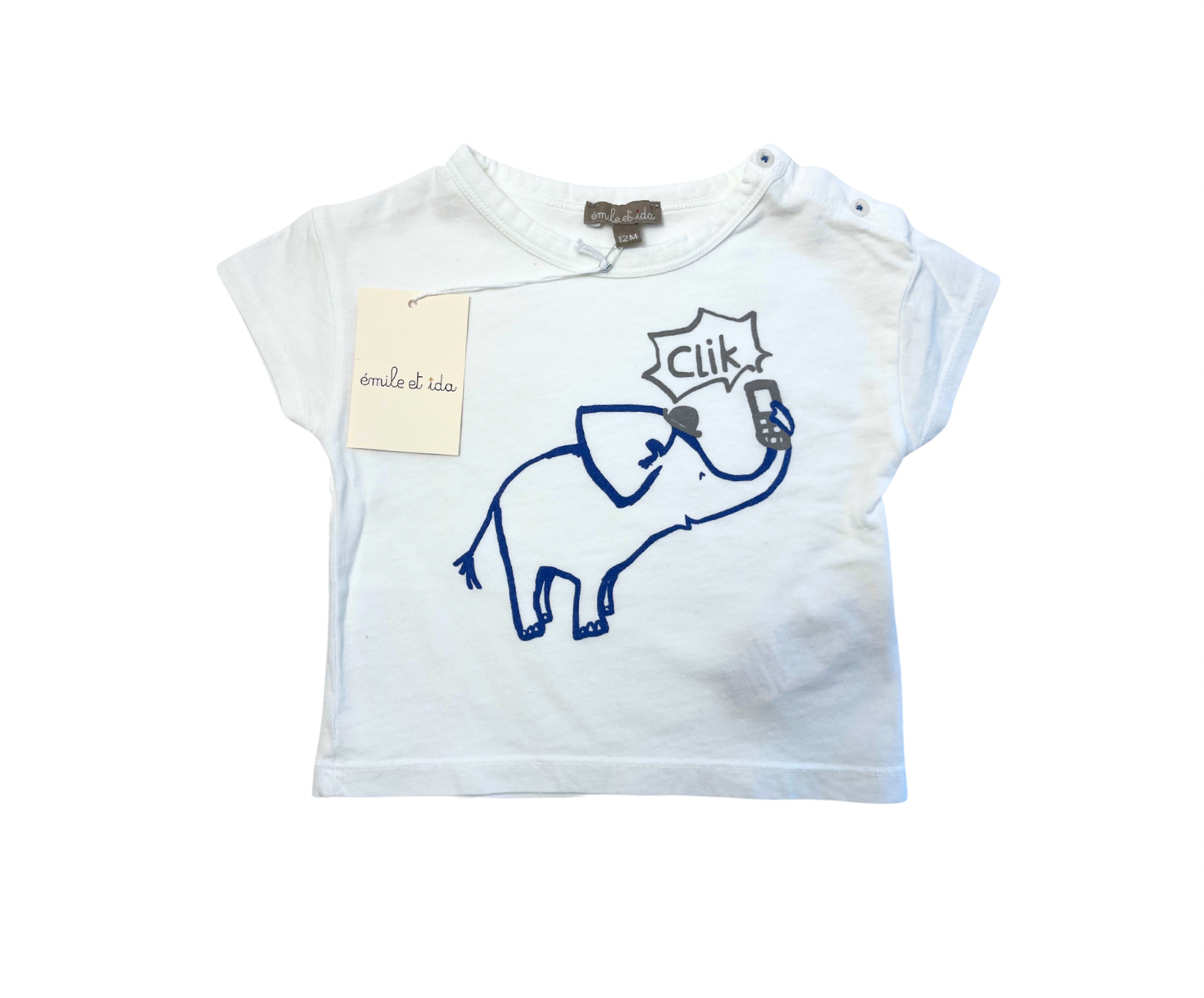 EMILE ET IDA - T-shirt blanc motif éléphant - 12 mois